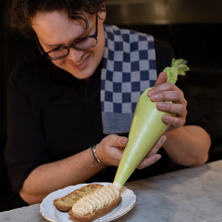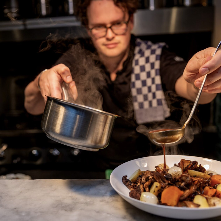 Chef-kok Sil Verhaegh kookt zoals in de Franse bistronomie: met oog voor eenvoud, product en smaakbalans. Hij werkt samen met producenten die zorg dragen voor bodem en biodiversiteit. Zo ontstaan er gerechten die verfijnd zijn in smaak en stevig geworteld in het seizoen.